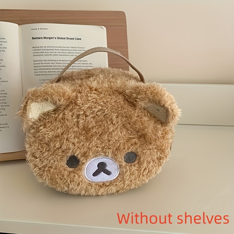 TEMU 여성용 귀여운 곰돌이 플러시 메이크업 파우치 - 부드러운 휴대용 여행용 화장품 정리함, 곰 얼굴 디자인, 컴팩트 핸드헬드 파우치, 일상 및 여행용