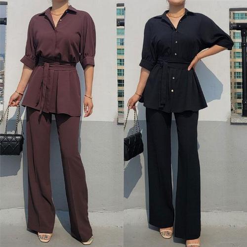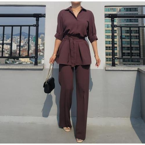 [바이어스]블라우스 빅 사이즈 와이드 슬랙스 바지 벨트 투피스 (15947856A)