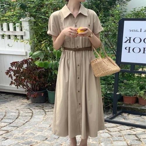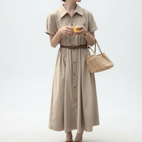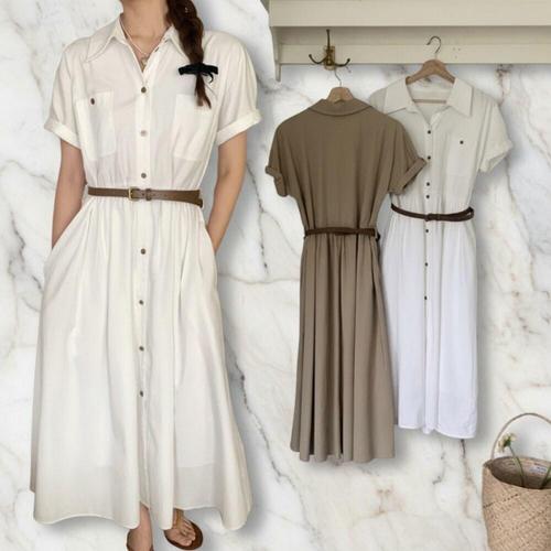 여름 데일리 카라 셔츠 롱 원피스 벨트세트 루즈핏 WFIY8L5