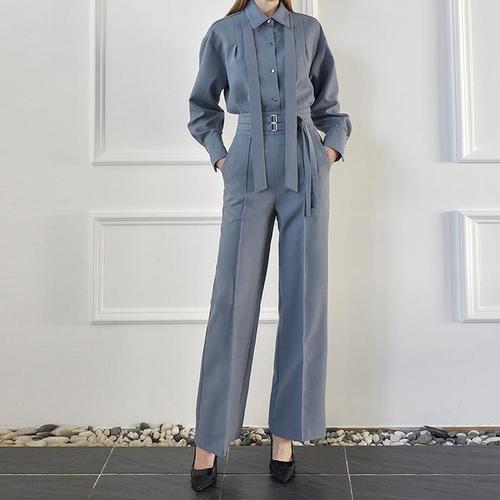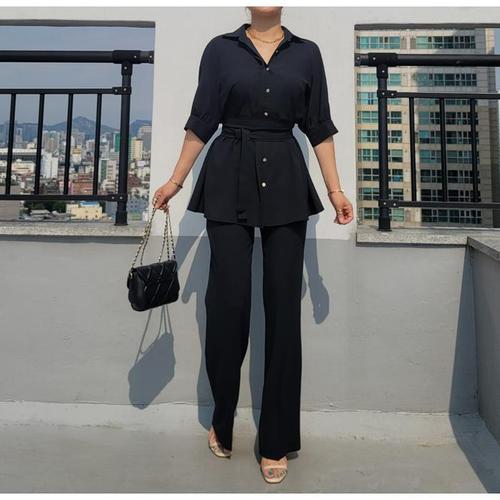 [바이어스]셔츠 블라우스 벨트 와이드 슬랙스 바지 투피스 셋업 (15947863A)