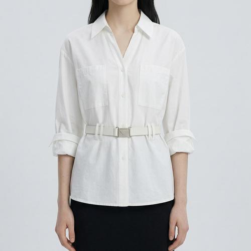 [퀸이즈][퀸이즈] [벨트+셔츠set]호티 오버핏 벨티드 포인트 카라 셔츠