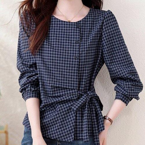 [핑크엘리제]허리벨트 체크패턴 출근룩 레지노아블라우스