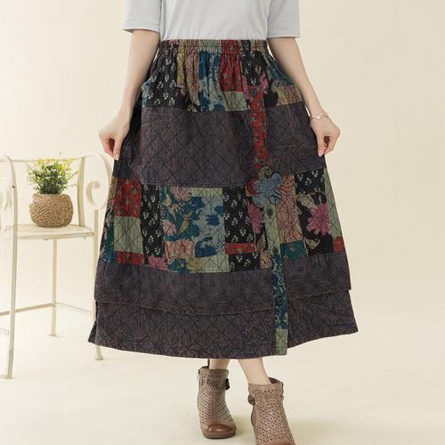 [디얼마미][디얼마미] 배색 패치 다이아 스커트 /마담 미시 중년 여성 빅사이즈 40대 50대