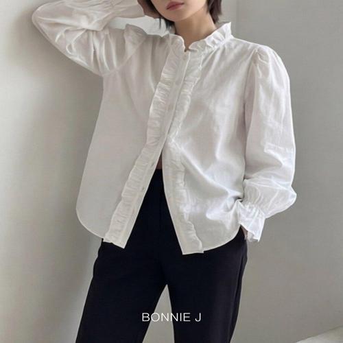 [보니제이]프릴 스탠드 카라 블라우스 로얄 블루 블랙 화이트 3