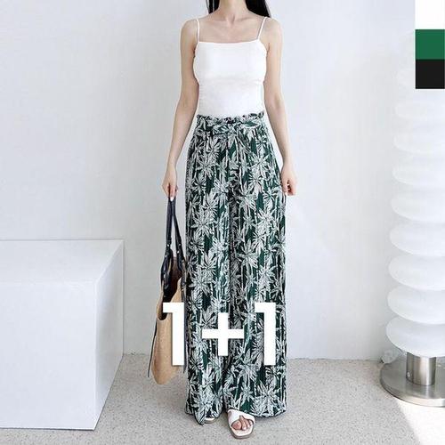 [에이치플러스몰]여자 여름 플리츠 프릴 와이드 밴딩 팬츠