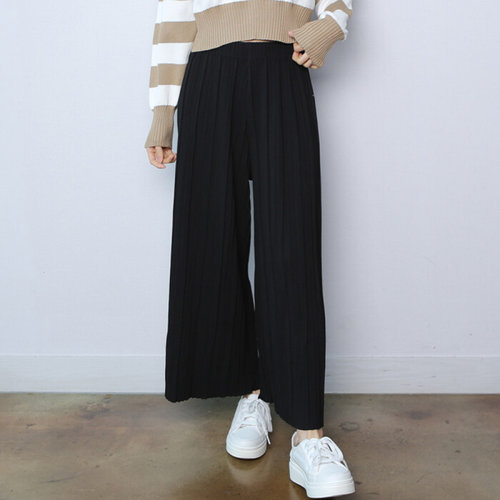 [미라클세븐]여성 플리츠 와이드 팬츠 밴딩 찰랑핏 등원룩