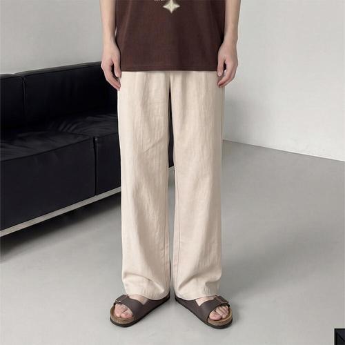 린넨 테이퍼드 핏 밴딩 팬츠 여름 남자 마 바지 남성 쿨 아이스 슬랙스 시원한