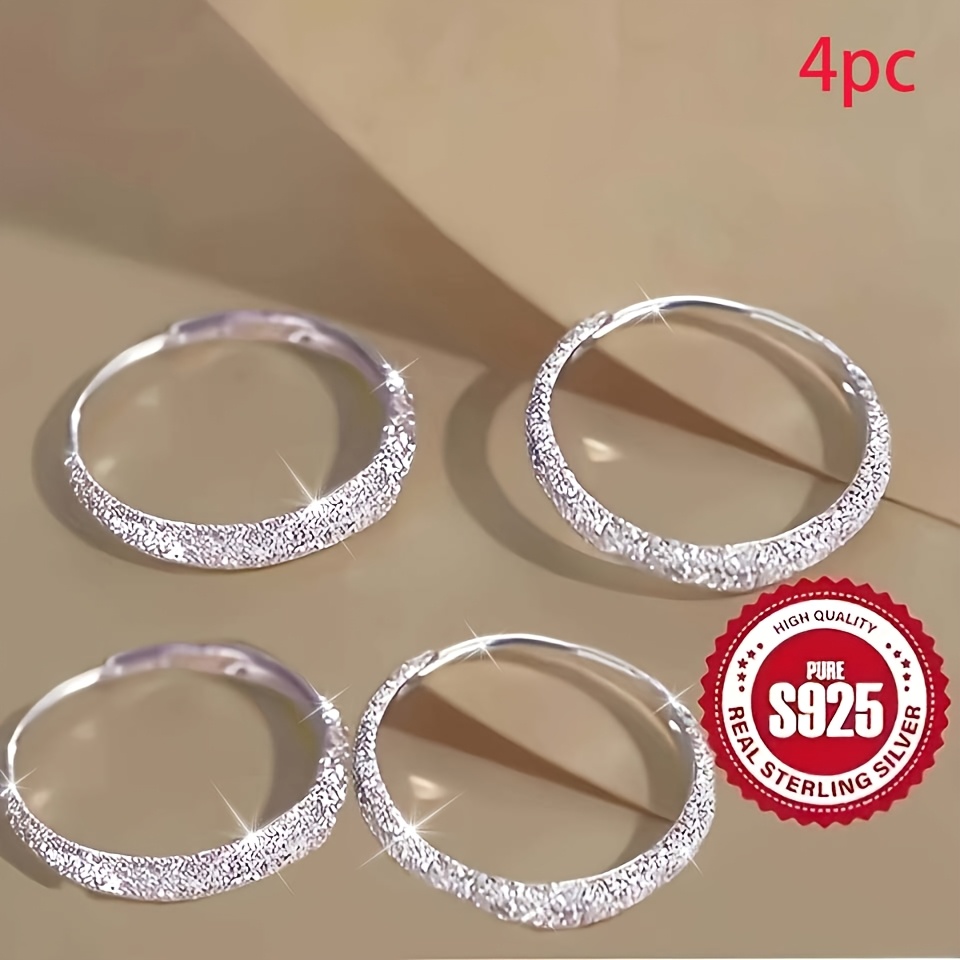 TEMU 4개 세트 실버 귀걸이 - 스타라이트 후프 귀걸이, 합성 지르코니아, 프로스티드 후프 귀걸이