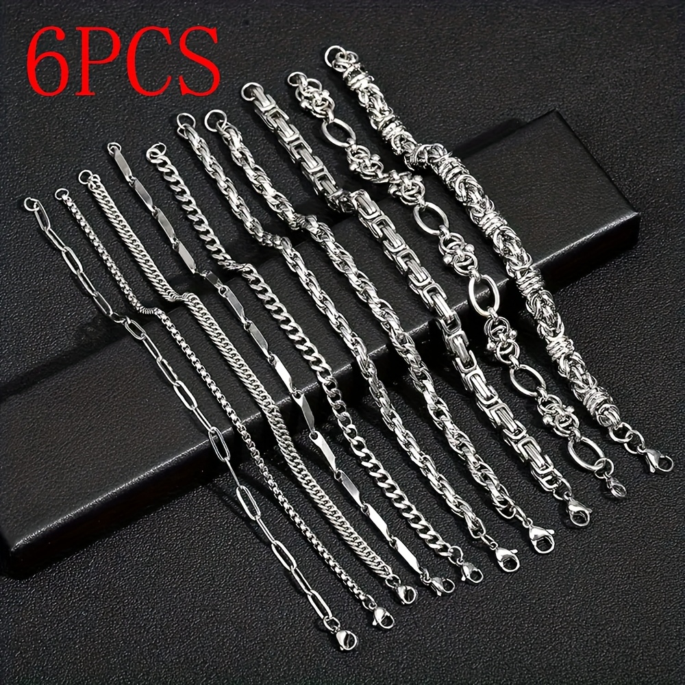 TEMU 6개 세트 남녀공용 304 스테인리스 스틸 팔찌 - 변색 없는 매칭 세트, 데일리웨어, 파티, 음악 페스티벌에 적합 - 세탁 가능한 팔찌, 연중 선물용 (남성 & 여성)