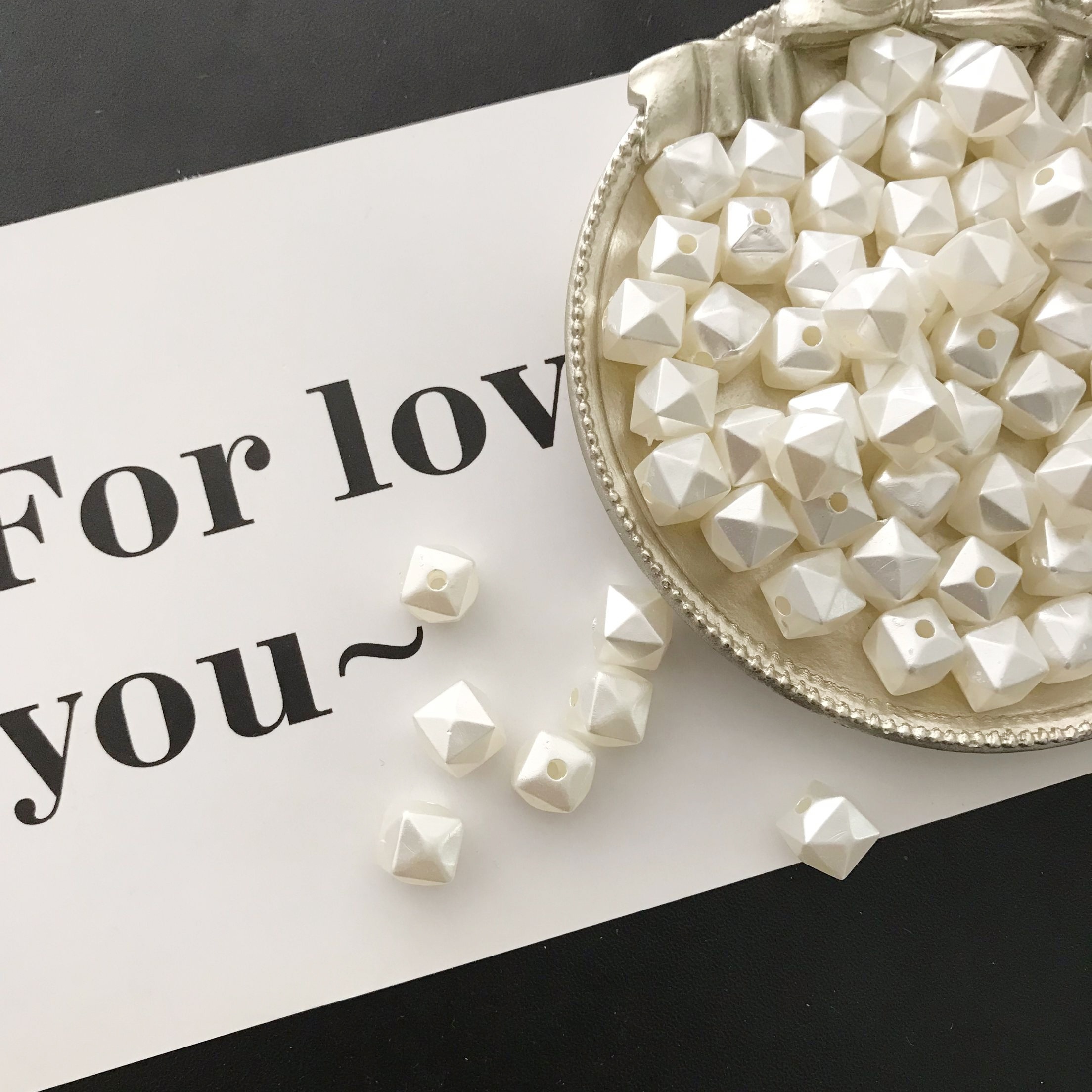 TEMU 트렌디한 주얼리 액세서리 50개입, 순백색 및 오프화이트 ABS 소재 비즈, 다면성 루스 비즈.