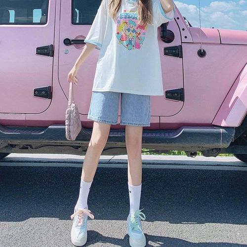 [옷자락]여성 스트릿패션 보이핏 데님 하프 청 반바지
