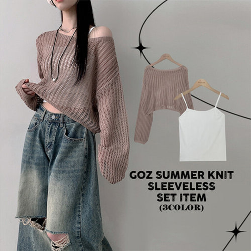 더핑크 / 고즈 보트넥 그물 썸머 긴팔 니트+끈 나시 set