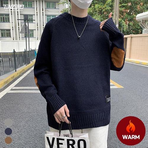 텐제로 겨울 남성 팔꿈치 패치보호대 오버핏 스웨터 니트셔츠 Bon-2621