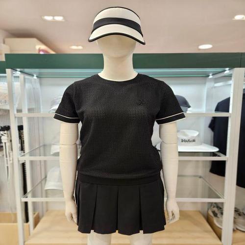 [볼빅어패럴] 여성 골프 전체 메쉬 반팔 라운드 티셔츠 VLTSN502_BK