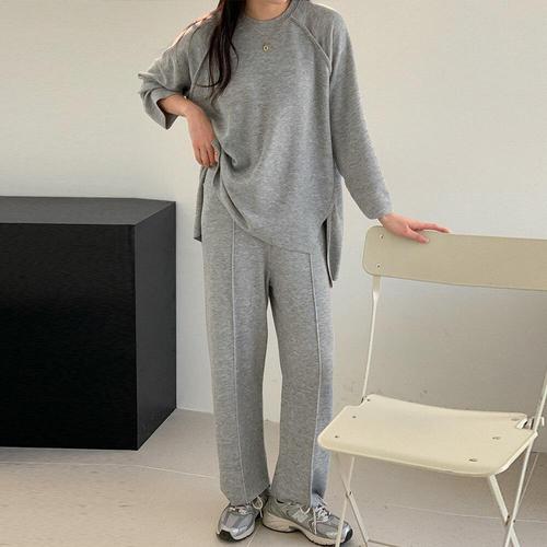 [유야]여성 긴팔 트임 롱 티셔츠 밴딩 바지 세트 -FPST0473- 봄 가을