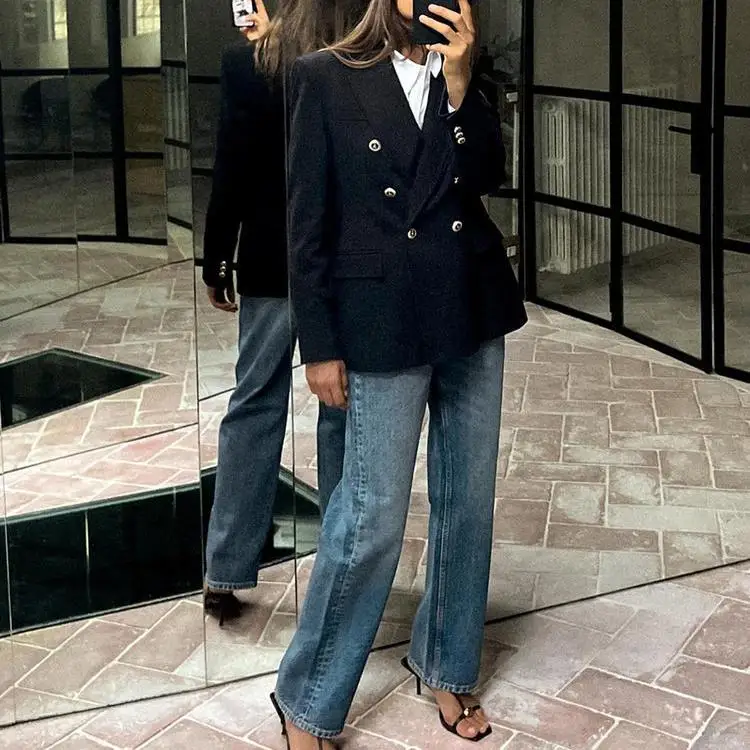 봄 신상 여성 맞춤형 긴 소매 출퇴근 캐주얼 수트 재킷 더블 버튼 슬림 핏 우아한 다용도 스타일