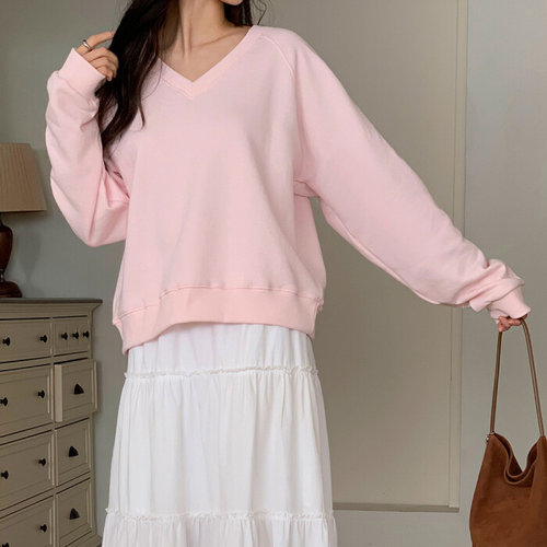 [옷자락] 여자 봄옷 파스텔 무지 브이넥 나그랑 오버핏 맨투맨