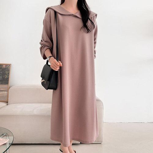 [옷자락] 여자 세일러카라넥 봄옷 빅사이즈 임부복 스판 롱원피스