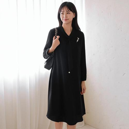 드리다 여성 봄 가을 브이넥 타이 진주 빅사이즈 H라인 롱 원피스 40-50대 미시 중년여성 엄마옷 하객 모임