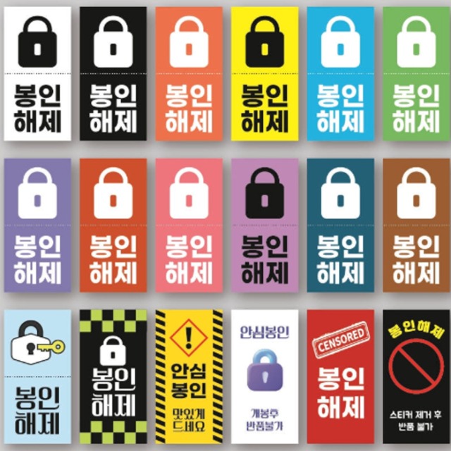 다양한 배달안심 봉인해제 스티커 디자인, 사각재단형 및 다양한디자인, 상호인쇄무료