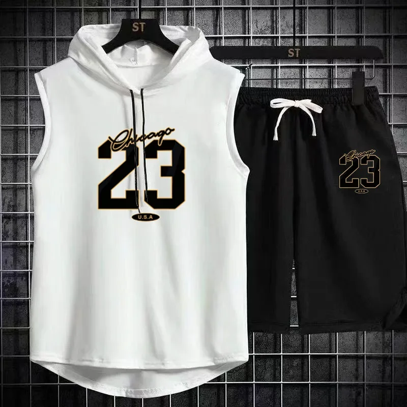 2025 새로운 통기성 모델 남성 여름 스포츠 정장 인쇄 느슨한 통기성 짧은 소매 + 조깅 반바지 정장