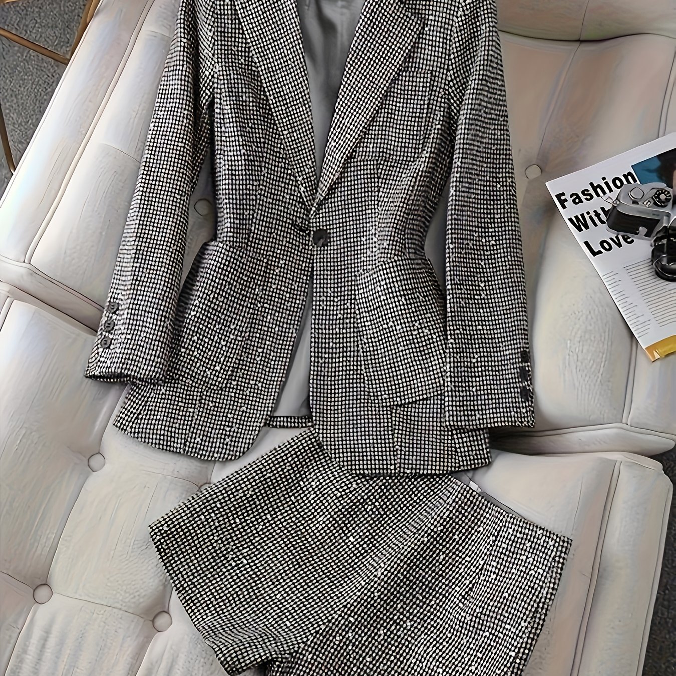 TEMU 스타일리시하고 우아한 빈티지 체크무늬 정장 세트