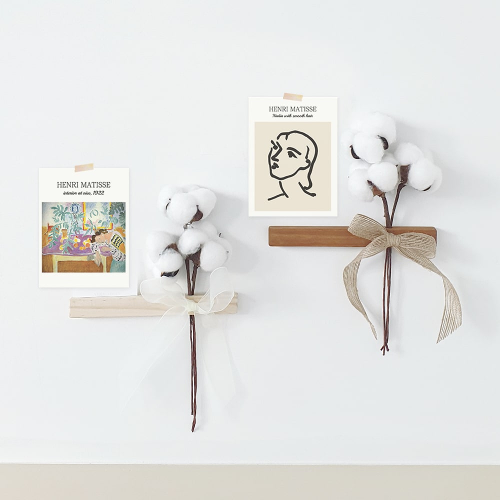 벽인테리어 소품샵 드라이플라워 목화3P 냉장고 자석 현관꾸미기 핸드메이드 엽서증정