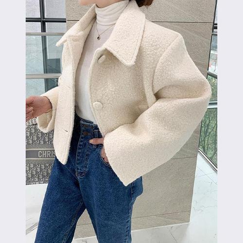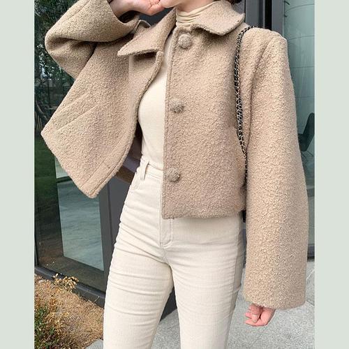[바이어스]부클 카라 숏 코트 겨울 싱글 크롭 여자 자켓 코디 룩 (11441114A)