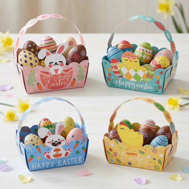 이빈다다 8개의 PCS 부활절 바구니 포장 세트 재사용 가능한 가방 손잡이 달걀 사냥 사탕 파티를 위한