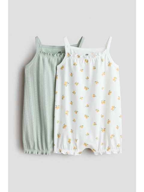 [에이치엔엠] 코튼 롬퍼 2피스 세트 라이트 터쿼이스/플로럴 1329487001