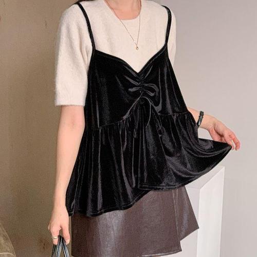 [다잇템]여자 벨루어 벨로아 잔주름 리본 뷔스티에