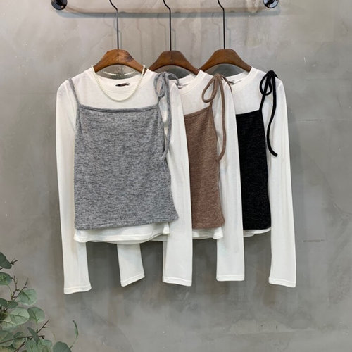 씨샵인더룸 / 코자 트임 끈 나시 뷔스티에 시스루 긴팔 티셔츠 세트 3color
