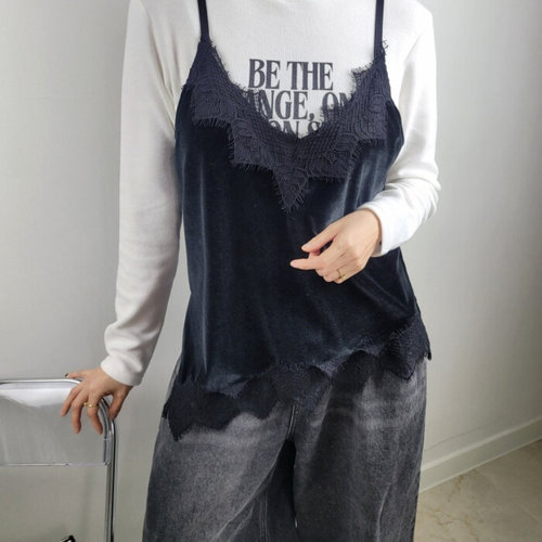 씨샵인더룸 / (블랙라벨) 이보 벨벳 레이스 끈조절 뷔스티에 나시 블라우스 one color