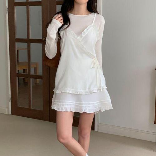 ONM 시스루 롱나시 뷔스티에 원피스 셔츠 레이어드