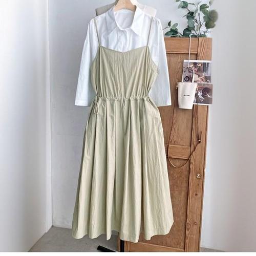 [셀러허브_여성트랜드패션]셔츠 블라우스 뷔스티에 주름 플리츠 원피스 세트 룩