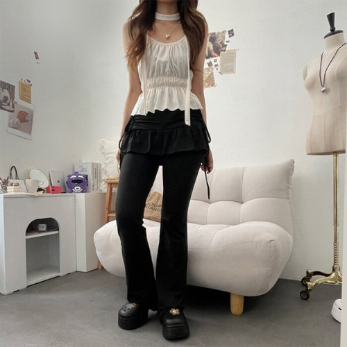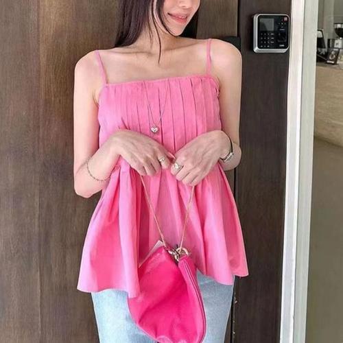 여자 썸머 플리츠 뷔스티에 스트랩 블라우스