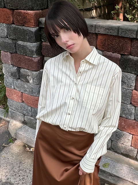[마담포라] 언발 스트라이프 셔츠 MA3BL505A