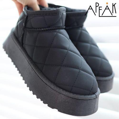 [스포츠용품(기타브랜드)]여성 퀼팅 패딩부츠 퍼안감 5cm키높이 플랫폼 겨울부츠 방한화 블랙