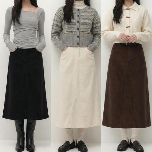 [기타브랜드]밑단 포인트 플리스기모 코듀로이 A라인 롱스커트