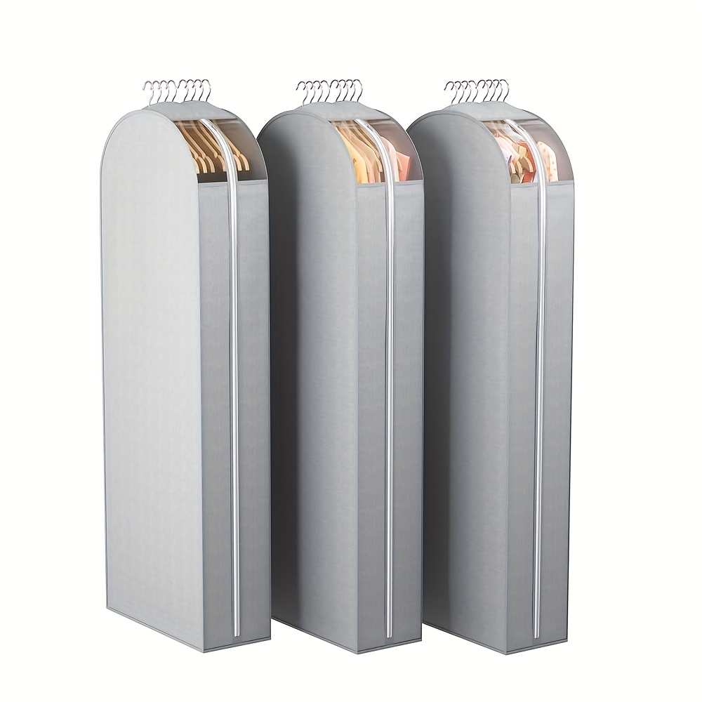 TEMU 주름 방지 옷걸이형 투명 창 옷 보관 백 3개 세트. 정장, 코트, 드레스, 재킷, 셔츠, 털 옷 옷장 보호 커버 보관을 위해 디자인된 오픈 옷장 보관용으로 적합합니다.