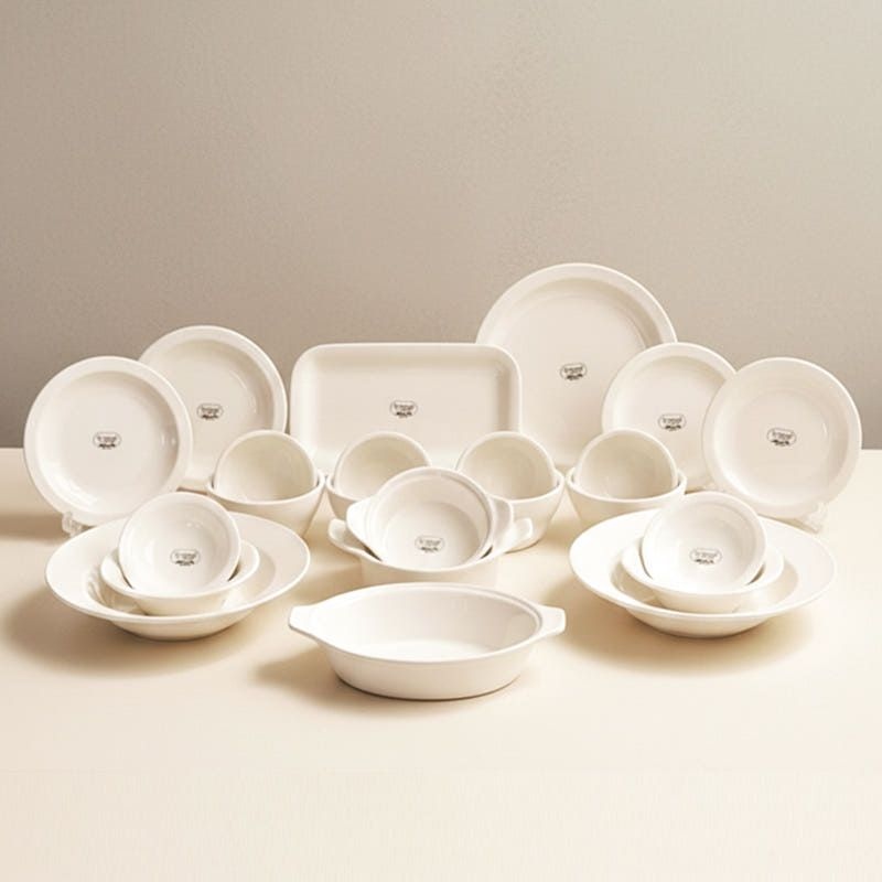 뉴욕 크림화이트 4인 그릇세트 23P 생선 접시 식기 세트 신혼그릇