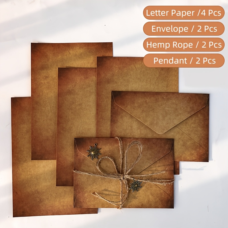 TEMU 10개 세트 (봉투*2+편지지*4+면직물 로프*2+걸이 장식*2) 손글씨 사랑 편지 시리즈 봉투 세트 레트로 크라프트 종이 편지지 봉투 세트 창의적인 문학적 손글씨 사랑 편지 로맨틱 고급 문구류