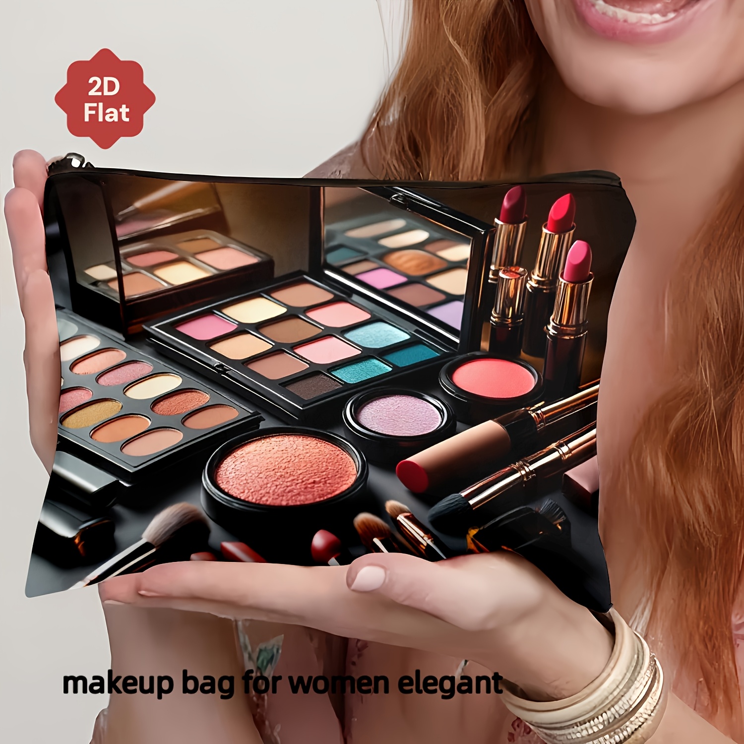 TEMU 1개 평면 프린트 휴대용 화장품 정리함, 립스틱, 아이섀도우, 블러셔 패턴이 특징인 여성용 메이크업 파우치. 컴팩트한 디자인으로 여행, 헬스장, 캠핑 및 일상 사용에 이상적입니다.