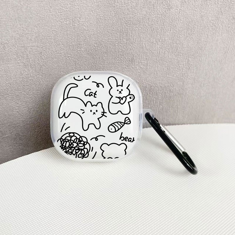 TEMU 삼성 갤럭시 Buds2/Buds2 Pro/Buds Live/Buds FE용 라인 고양이와 토끼 패턴 이어폰 케이스 | 투명 열가소성 폴리우레탄 보호 커버