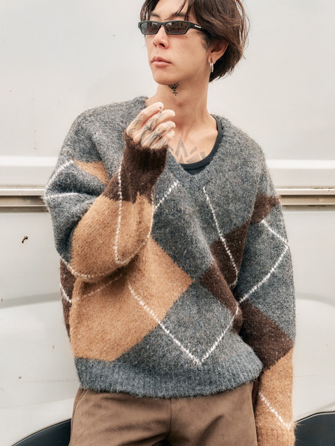 [프로젝트 웨이브] 아가일 패턴 브이넥 풀오버
