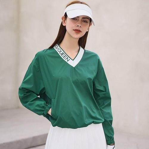 [로로얼로이]여성 골프 바람막이 브이넥 크롭 아노락티셔츠 스프링 골프맨투맨