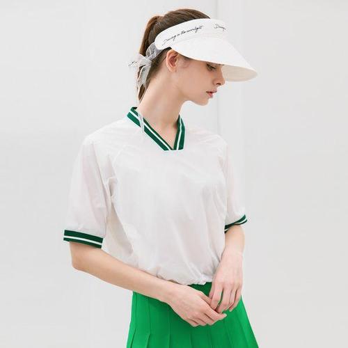 [큐오지]골프 V넥 밑단 스츠링 아노락 바람막이 티셔츠_3color