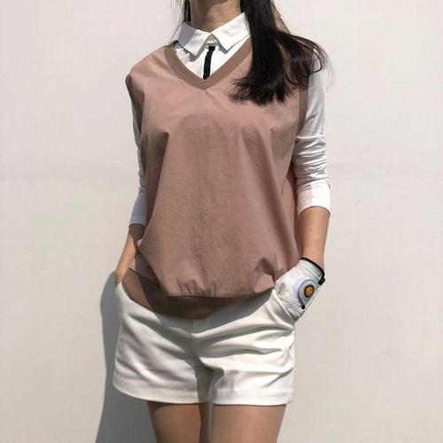 [큐오지]골프 밑단 스트링 배색 V넥 바람막이_4color