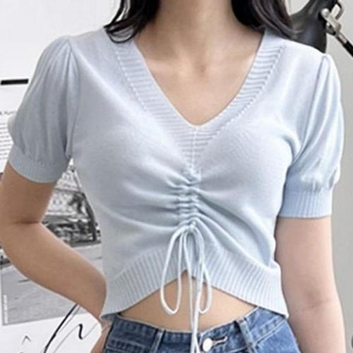 [엄지척]브이넥 니트 반팔티 기본 프릴소매 여름옷 데일리티_19659941_667501