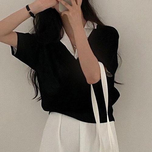 TEMU [피어슨 OBM] 남성 봄 여름 반팔 골프 스웨터 라이트 럭셔리 V넥 헨리 셔츠 티셔츠, 헤비웨이트 미니 와플 텍스처 원단 대비 더블 레이어 칼 패션 디자인 폴로 셔츠, 피부 친화적 소프트 세탁기 사용 가능